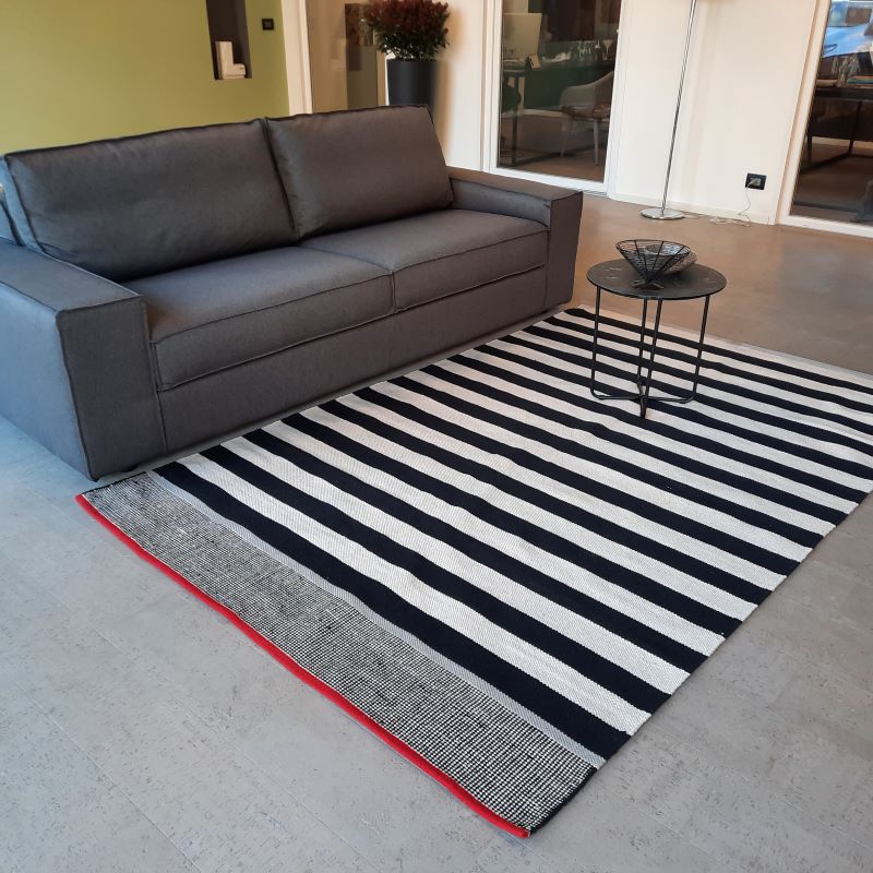 Reversible Striped Cotton Rug handcrafted on a traditional loom, designed to refresh and enhance any living space with style. Its modern striped pattern brings a fresh and versatile look, easily complementing interiors ranging from minimalist to more vibrant and colorful décors.