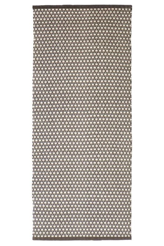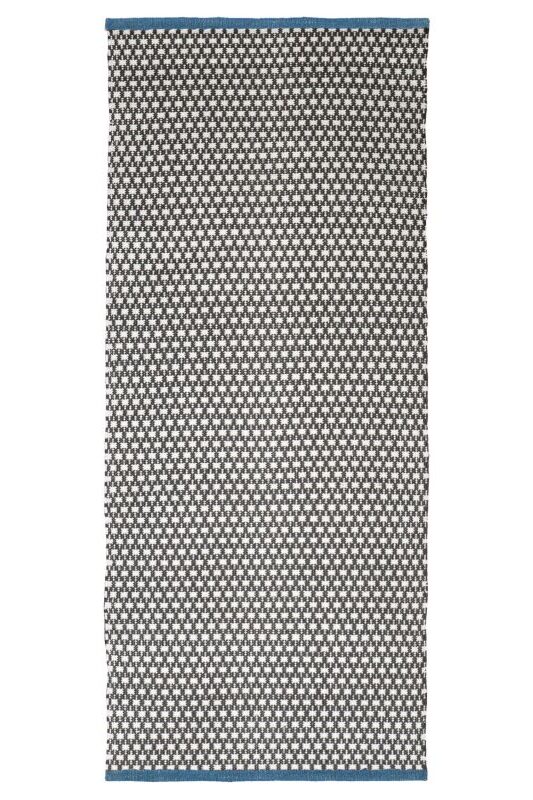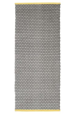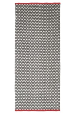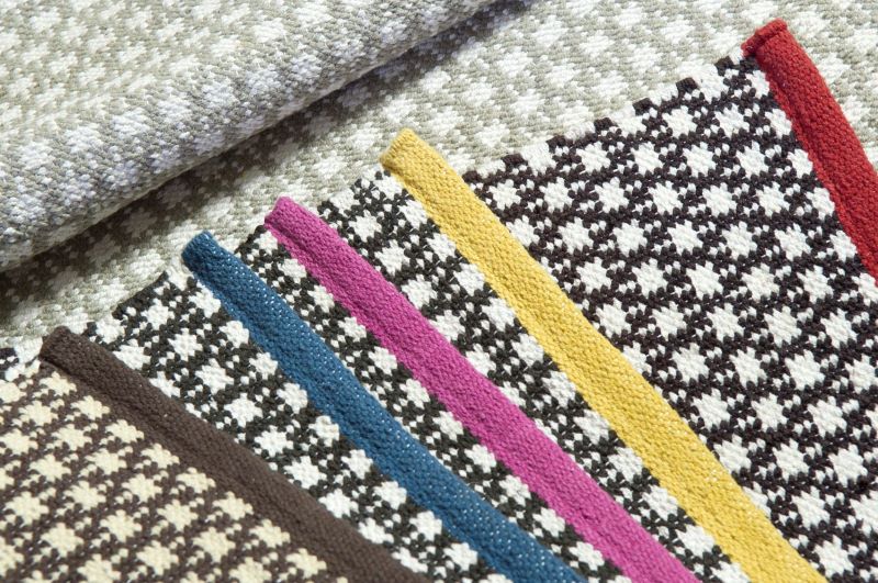 This cotton rug features an elegant geometric weave enhanced by a colored border, creating a contemporary design that adds style and character to your home.