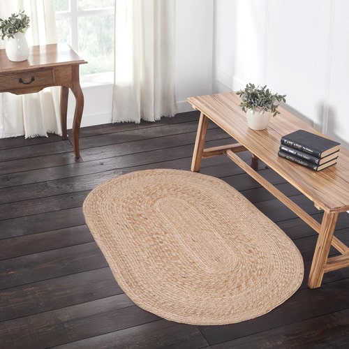 Oval Natural Jute Rug featuring the original color of the plant fiber, perfect for those who appreciate an authentic, natural, and sustainable style. The woven fibers ensure durability and long-lasting performance, while the compact size makes it ideal for entryways, kitchens, or bedrooms.