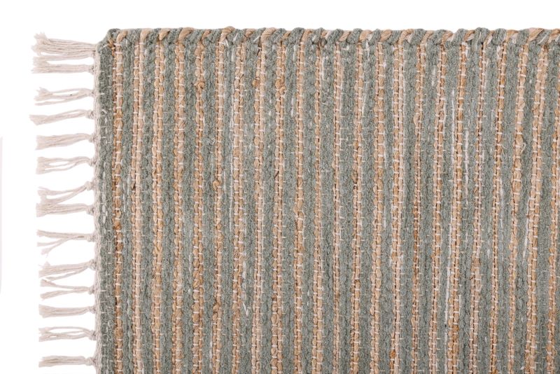 Rectangular Jute & Cotton Rug designed to bring a refined and natural touch to your living spaces. Made from a blend of durable natural fibers, this rug features a striped pattern in natural and grey tones, creating a modern and elegant contrast that enhances a variety of interiors.