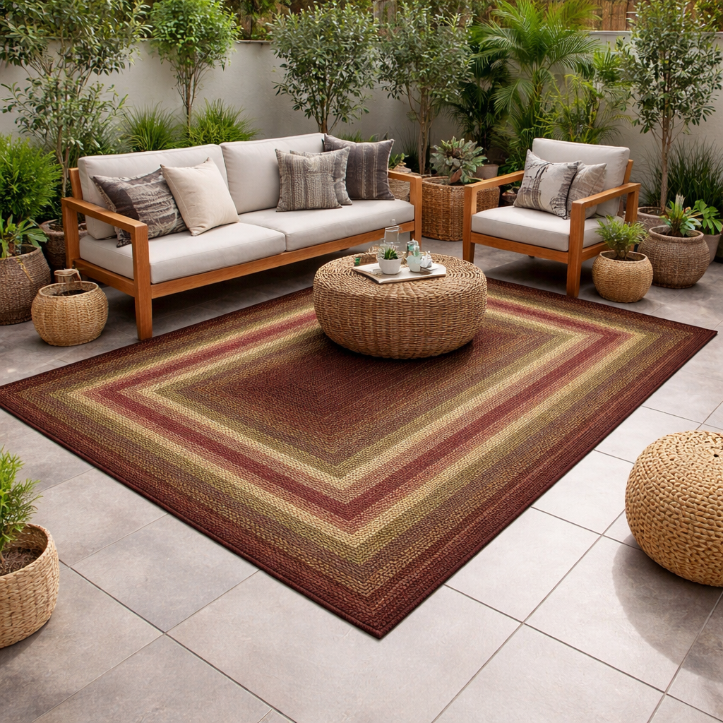 Rectangular Polypropylene Rug (180 x 275 cm) featuring a refined woven design, perfect for enhancing both indoor and outdoor spaces. Its elegant blend of deep burgundy tones adds warmth and character to any setting.