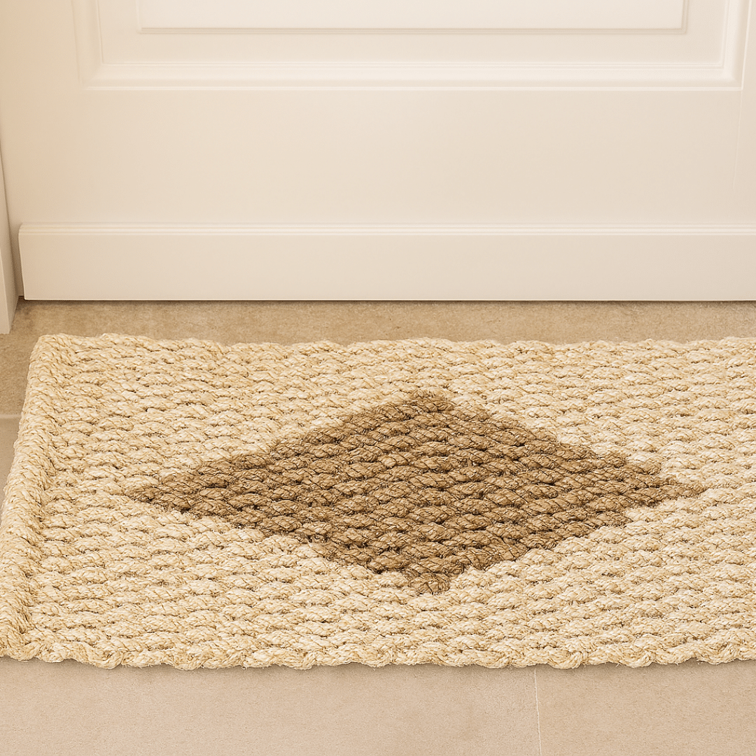 Zerbino naturale realizzato con materiali di alta qualità: corda di cocco sbiancato e inserti di juta melange. Questa combinazione di materiali garantisce resistenza, funzionalità e un design elegante, rendendo questo zerbino una scelta ideale per l’ingresso di casa.